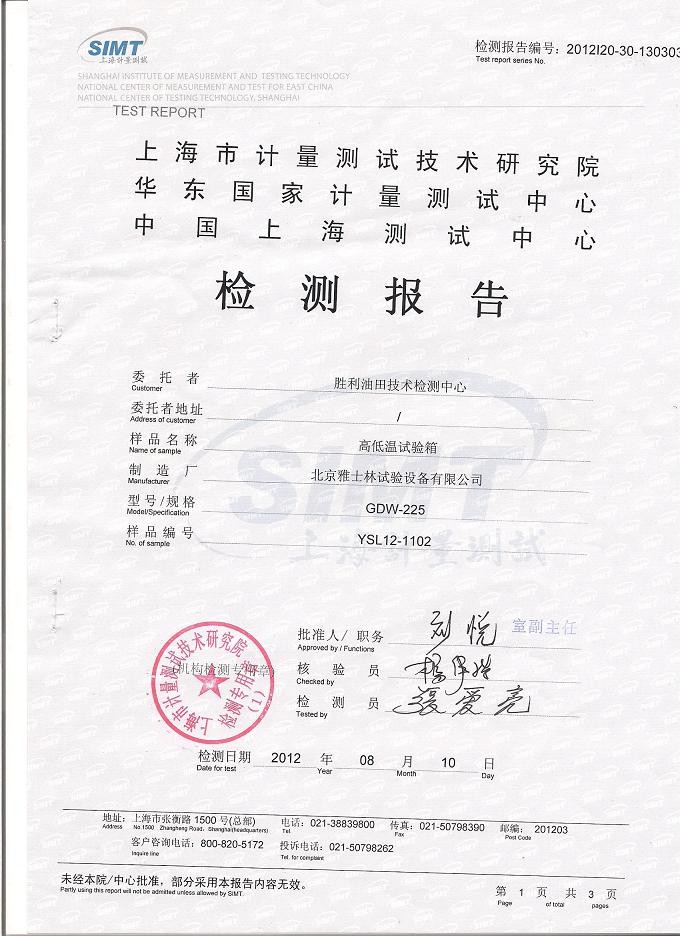 ·高低溫試驗(yàn)箱產(chǎn)品質(zhì)量檢測報(bào)告模板