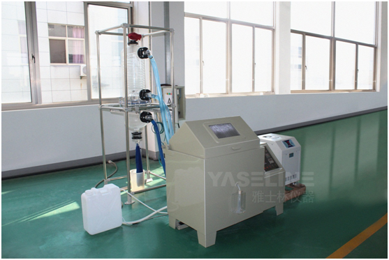 其實廢氣收集裝置的原理很簡單,類似精餾塔的原理,排霧管將霧氣排到玻璃器皿中,玻璃器皿當(dāng)中有螺旋盤繞的玻璃水管,水管中會連續(xù)不斷有流動的低溫水(低溫水由小型冰水機提供),高溫的霧氣,通過附著在低溫的玻璃水管上后會迅速冷凝成為液體滴落下來,到下方的集中收集區(qū),客戶直接處理收集到的廢霧水即可。