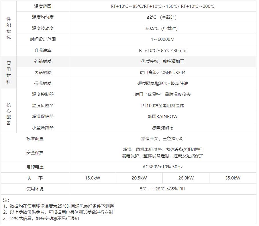 溫度范圍 | RT+10℃~85℃/RT+10℃~150℃/ RT+10℃~200℃ | |||||